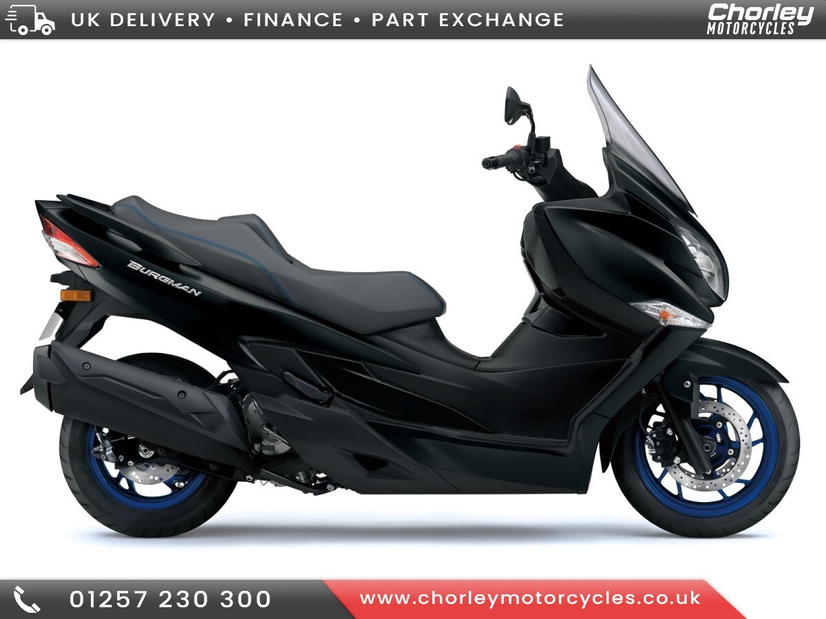 Great YarmouthSUZUKI BURGMAN 400 (AN400AM4) **SAVING £600**0 miles bike with full Suzuki manufacturers warranty. Your new Suzuki will not only benefit from our 3Year Warranty but in addition our Service Activated Warranty that covers you through to your next service, every time you service with us until your bike is 7 years old or you reach 70,000 miles. For added peace of mind all new Suzuki motorcycles come with one years AA Suzuki Roadside Assistance. Choose from Metallic Matt Black or Solid Iron Grey. Features... 400cc DOHC 4Valve engine with Dual Spark Technology, Suzuki Advanced Immobiliser System, Suzuki Easy Start System, Traction Control System, two front storage compartments, spacious 42 litre under seat storage compartment for 2 helmets, LED lighting, multifunction instruments. UK Nationwide Delivery and HP or PCP finance available. Part exchange welcome. OTR charges apply. CALL US NOW 01257 230300