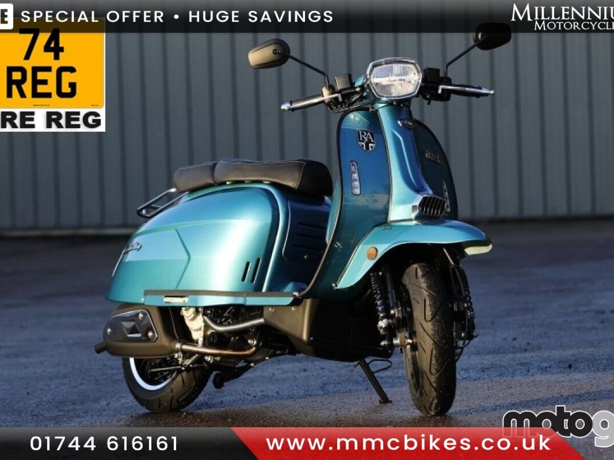 Save £300 on your new ROYAL ALLOY GP 300 S LC ABS!''Buy On Line or over the Phone, Low Rate Self Serve Finance Available, Free local delivery from your Local Official Royal Alloy Motorcycle & Scooter Dealer Message us or Call for more details''The Royal Alloy GP 300 ABS A truly authentic retro scooter made of steel that respectfully nods towards the Classic scooter designs of the past but with all the added benefits of modern technology and equipment. It does not stop there the Royal Alloy GP300 features a reliable and proven engine, advanced antidive front suspension, Bosch ABS system, Digital clocks and LED lighting. The Royal Alloy range is truly unique in being the only British brand that provides a complete portfolio of 'Real' Retro' scooters with classic Italian style and looks for the modern rider. With performance and looks to rival anything else in its class expect to see the GP300 become a regular sight in local scooter clubs, meets and rallies.*OTR charges plus £150 includes the first registration fee, road fund licence, number plate and PDI*Finance subject to terms and conditionsColours available: Yellow/Ivory, Burgundy/Ivory, Blue/Ivory, Modern Orange, Ivory , Pearl White, Azzure Blue and Mid Grey