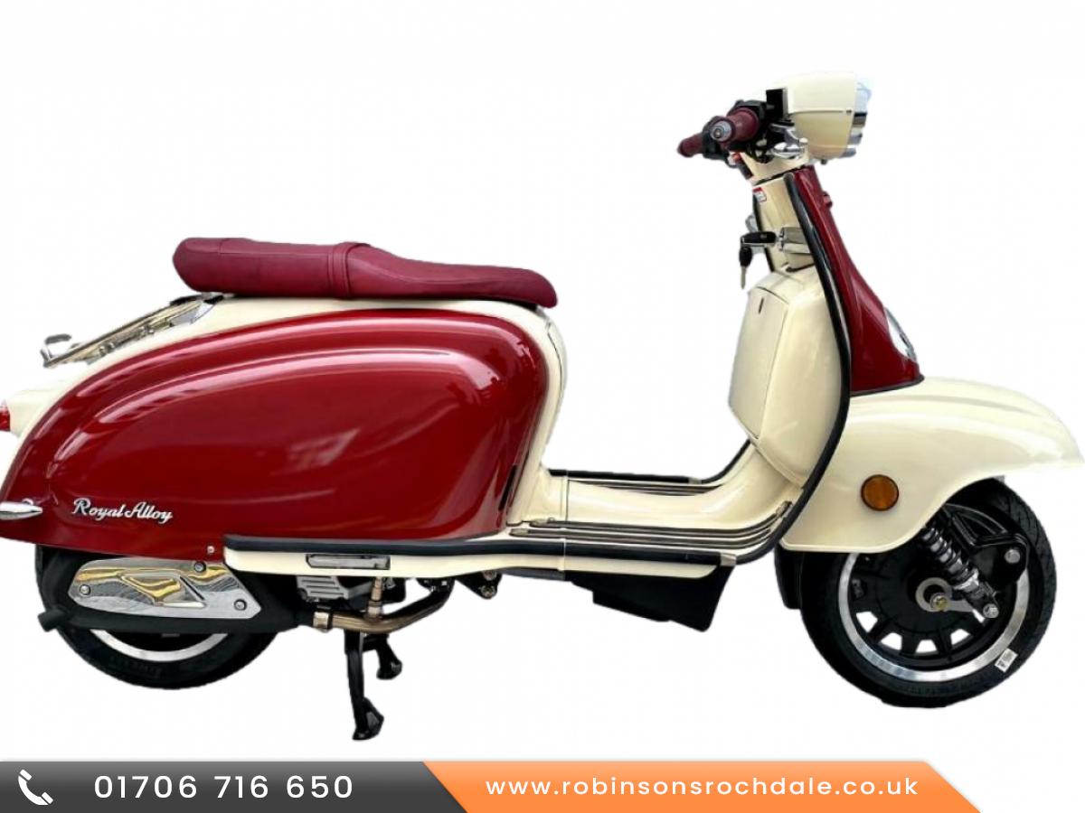 Pre registered machines from £3299 The Royal Alloy TG125 LC choice of colours The TG range is fully embracing the mix of authentic retro style with modern technology, an echo of the past made real and practical for the 21st century.Boasting a completely new design, some fantastic features including a state of the art fullcolour TFT speedometer display with touch screen technology including LED lighting, new design seat with lower seating position and height, redesigned wheels, classic headset Gem and available as 125LC and 300LC engine sizes.Please call us at Robinsons of Rochdale on 01706 716650 for the best price.