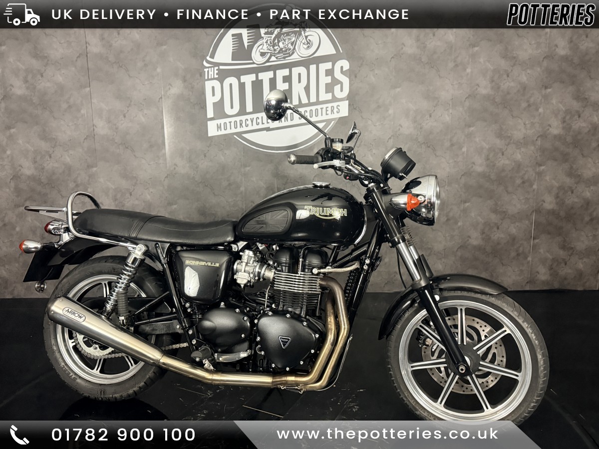 Genuine little Triumph Bonneville 865.2012 bike with only 3930 miles on the clock.Stunning condition all round, with Arrow exhausts.Will receive a fresh MOT and oil and filter change. Nationwide delivery available.Part exchange welcome and finance can be arranged over the phone or in store.Over 300 New and used bikes in store at our huge 20000 square foot showroom based in Stoke on Trent just off junction 15 or 16 of the M6.Buying from a distance? Ask for a detailed video walkaround via WhatsApp on 07594817630 so you can inspect the bike before purchase.01782 900100 or infothepotteries.co.ukWe offer home delivery with a 7day distanceselling return period, in line with the Consumer Rights Act.Returns must be as delivered, in the same condition as supplied, and with no additional mileage. Delivery charges are nonrefundable, and return transport costs are the buyers responsibility.